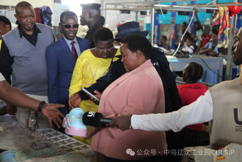 2025年8月30日 —— 乌干达共和国总理罗比娜·纳班贾莅临乌干达辽沈工业园,进行了一次富有成果的视察访问。总理重点参观了园区内代表中乌产能合作成果的钜诚鞋业、哥克塔职业装以及旺康陶瓷三家中国企业,总理高度评价中乌合作成果,强调中国技术制造业为乌干达带来的实惠,称辽沈工业园已成为乌干达工业化进程的重要引擎,为当地经济与社会发展注入新活力。视察期间,总理深入生产一线,仔细观看了各企业的生产工艺流程,并与企业管理层及当地员工亲切交流。在钜诚鞋业现代化的制鞋生产线前,她详细询问了产品的市场销售、本地化采购以及创造就业等情况。当得知企业不仅为当地提供了大量就业岗位,还积极培训乌干达员工掌握专业技能时,总理频频点头表示赞许。