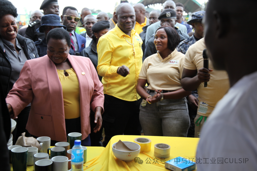 视察结束后,总理出席辽沈工业园展销会。现场汇聚了园区32家企业展台,吸引数千民众参与。总理在展台前驻足良久,认真观看各企业展示的创新产品,并与企业代表亲切交流。展销会现场人潮涌动,民众争相购买物美价廉的“乌干达制造”商品,场景热闹非凡。总理表示:“这样的展销会不仅展示了中乌合作的丰硕成果,更让乌干达人民切实感受到工业化带来的实惠。”