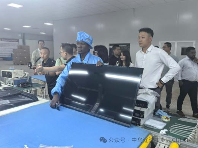 会后,代表团实地考察了园区内两家明星企业——卓越电子有限公司与无锡太宇乌干达有限公司。 在卓越电子有限公司,代表团参观了其智能化生产线,该企业专注于海信、长虹、东芝等品牌的电视产品加工,产品覆盖东非多国市场。负责人介绍,依托园区完善的配套政策与物流优势,本地化员工占比达95%,实现了经济效益与社会责任的同步增长。无锡太宇制造有限公司则展示了其在渔网、渔线、渔具制造领域的最新技术成果。代表团对其“属地化制造”理念与市场拓展成效给予高度评价。